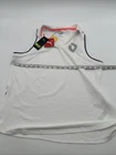 Elevate your casual wardrobe with this Puma tank top. The white top features an embroidered design on the V-neckline, adding a touch of elegance to the athletic fit. The pullover closure and sleeveless design make it perfect for warmer occasions, while the easy care feature ensures that it stays comfortable even after multiple washes. Made from a blend of polyester and spandex, this tank top is both durable and comfortable. The classic style and solid pattern make it a versatile addition to any wardrobe. Available in size L, this tank top is perfect for women who want to add a touch of style to their casual outfits. *Check the images above for the flaws and measurements of the item.