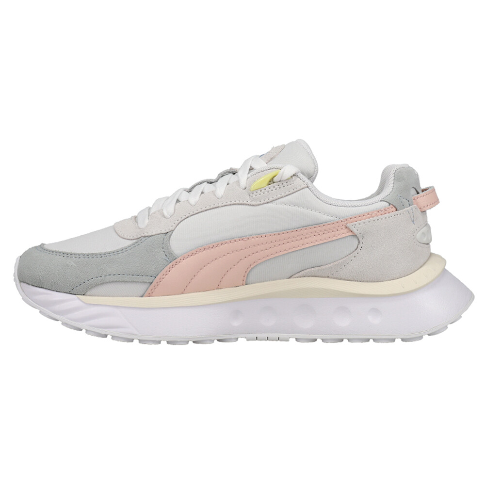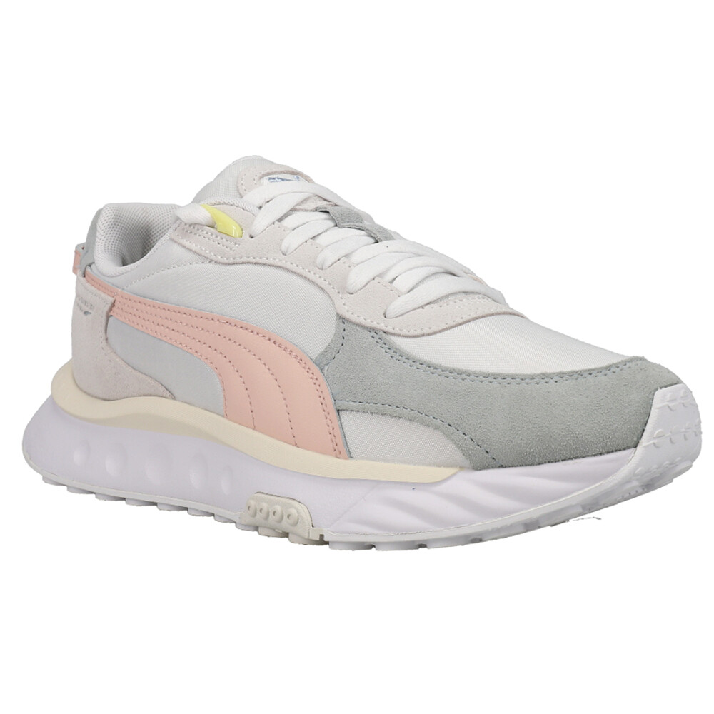 Wild Rider Rollin' Sneakers Product Details Synthetic upper Lace up closure Tricolor design IMEVA midsole gives you a smooth ride. Wild Rider is bringing a whole new dimension to the PUMA Rider family. Its design features fresh layers of material and a raw, edgy look. Inspired by the movement and motion of city life, Wild Rider is ready to take you forward, further, faster, and beyond. Additional Details Color: White Occasion: Casual Gender: Womens Age: Adult Brand: Puma