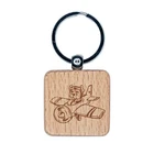 Puppy Pilot Dog in Airplane Engraved Wood Square Keychain Tag Charm