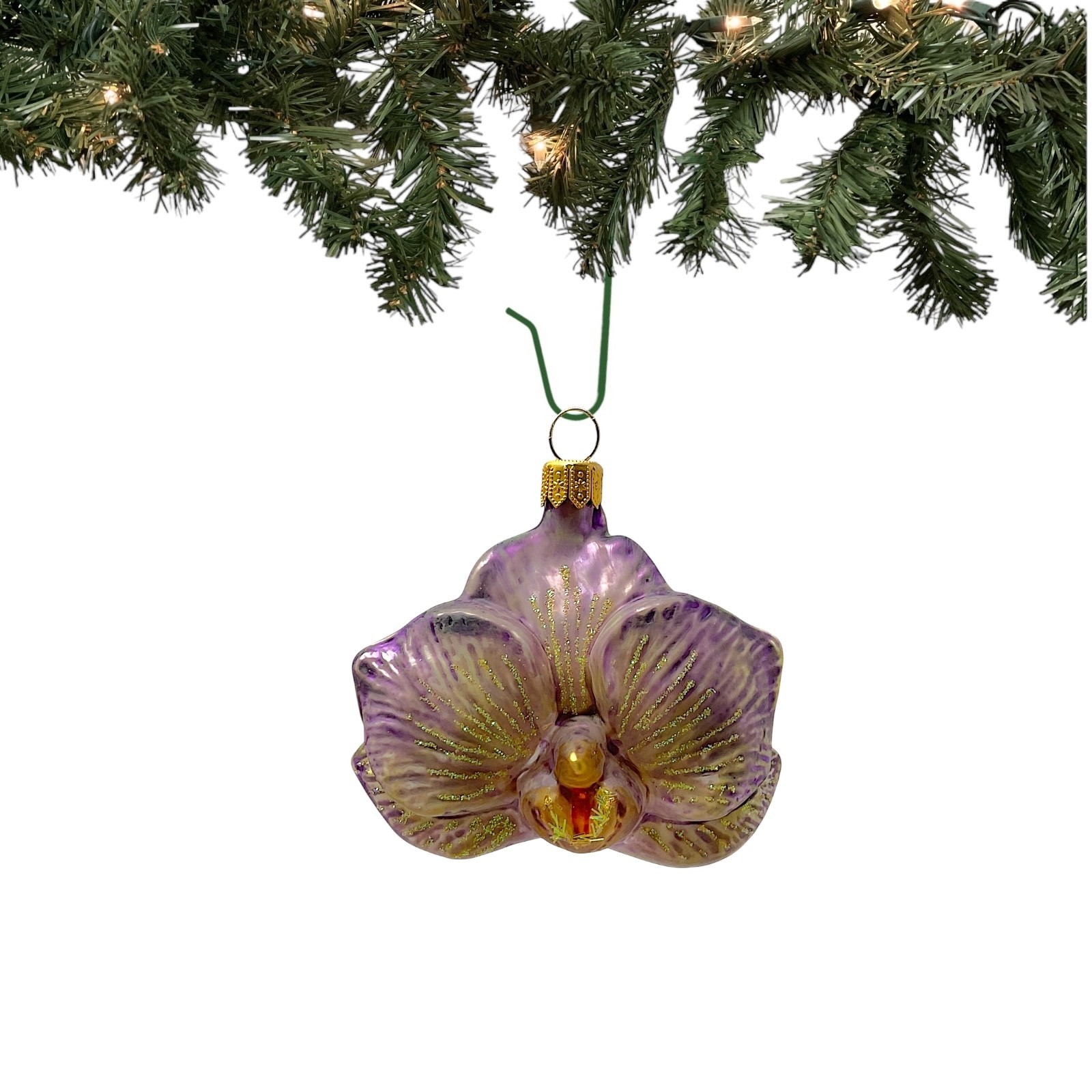 Purple Orchid Flower Polish Glass Christmas Tree Ornament Decoration Set of 2 PRODUCT DESCRIPTION Purple Orchid Flower Ornaments. Set of 2. Handcrafted in Poland. Hand-painted by Polish artisans. Made from mouth blown glass. Approximately 2.75 x 1 x 2.5 inches (LxWxH). Includes original Pinnacle Peak Trading box and packaging. Imported by Pinnacle Peak Trading Company. © Copyright . All rights reserved.