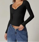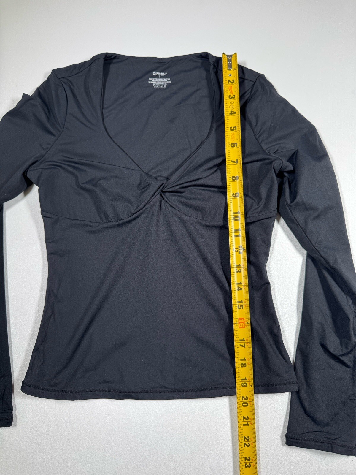 Elevate your wardrobe with this stylish and comfortable QINSEN women's basic t-shirt. The twist front V-neck design and long sleeves make it a perfect fit for any season. The black color and slim fit give it a chic and timeless look that you can wear for any occasion. Made of 80% nylon and 20% spandex, this t-shirt is both durable and soft. The lined interior provides extra comfort, while the snap closure ensures a secure fit. Whether you're going out for a casual day or dressing up for a special event, this SZ brand t-shirt is a must-have addition to your collection.