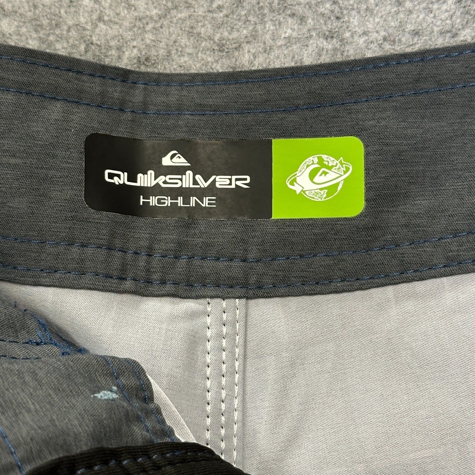 The Quiksilver Highline Boardshorts in a sail shaped geometric pattern are designed in Hawaii by surfers for surfers. Made of stretchy polyester material in a size 30 waist, these 4-way stretch board shorts offer comfort and flexibility in the water. The machine washable blended fabric ensures easy care, while the board shorts style provides a sleek silhouette for surfing performance. Featuring a hook and eye fabric strip plus laceup front closure, a back pocket with sewn in key loop, the Hawaiian islands embroidered near the Quiksilver logo, these shorts are perfect for surfers looking for functional and stylish swimwear. Made in Vietnam, these boardshorts are a must-have for any water sports enthusiast. Please review photo measurements to ensure a good fit. Ships from a smoke free home.
