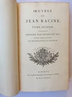 " Œuvres. Imprimé par ordre du roi pour l’éducation de monseigneur le Dauphin " Author: RACINE, Jean (1639-1699) Publication: Paris : Didot l’aîné Edition: 1784. Description: 3 vol. In-8 (190 x 125 mm). Edition typographique tirée à 350 exemplaires . Exemplaire sur papier vélin d’Annonay, dans son maroquin rouge de l’époque. Vignette de titre aux armes du Dauphin. Reliure de l’époque : maroquin rouge, triple filet doré en encadrement des plats, gardes de papier marbré, tranches dorées.