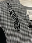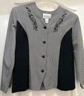 This auction is for a pre-owned Ladies Misses Size Large blazer/jacket top by Reina New York. it is black, has shoulder pads, V-neck and features beautiful embroidery at the neckline (see pictures). Measuring from armpit to armpit it is 23", across the waist measuring from seam to seam is 21" and measuring from the neckline to the bottom of the garment is 25". I am starting my auction at 9.99 or Buy It Now for 12.99. All sales are final.