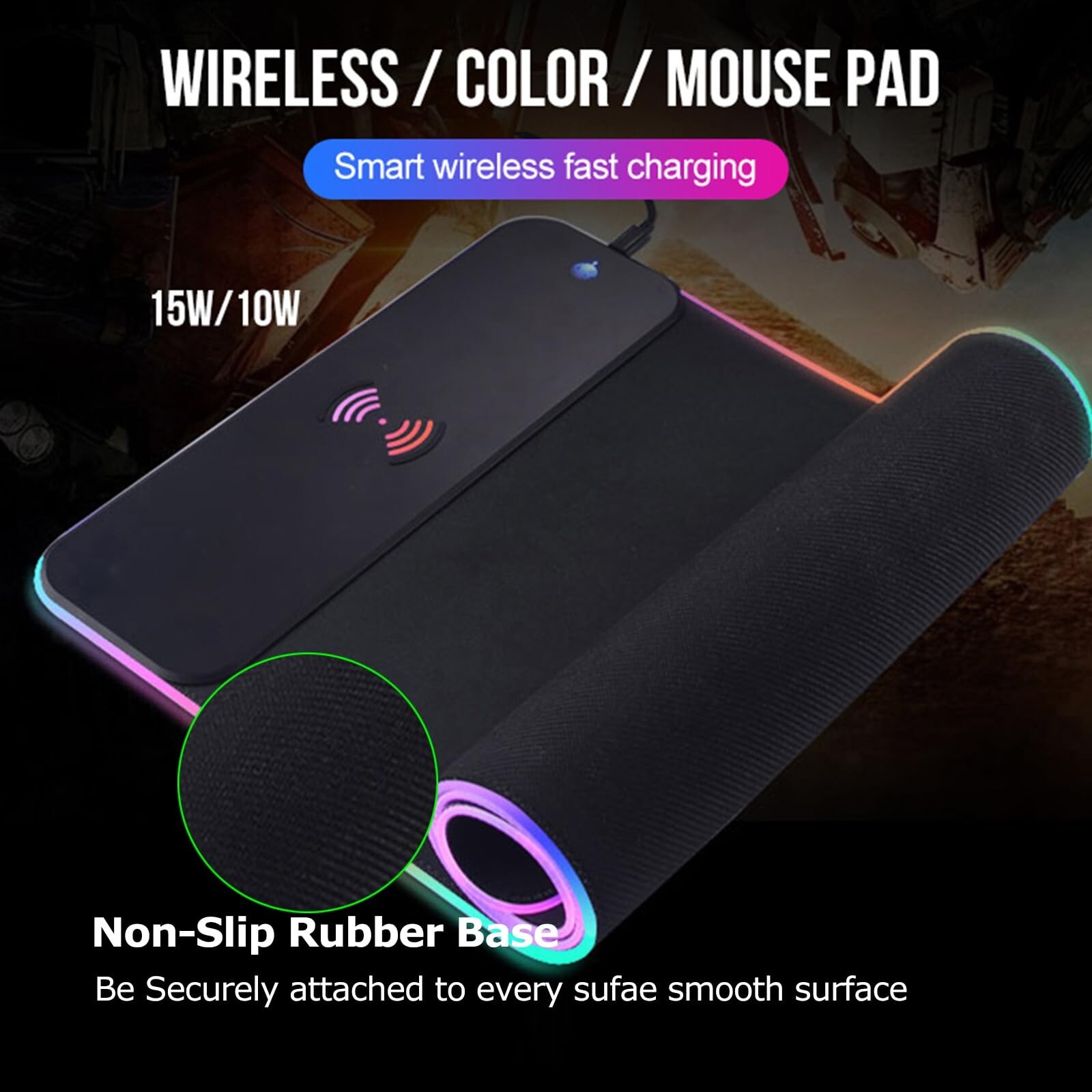 This RGB wireless charging mouse pad is a game-changer! The large size fits my keyboard and mouse perfectly, and the non-slip rubber base keeps it steady during intense gaming. The RGB lighting adds a cool vibe with multiple static and dynamic modes. The wireless charging works flawlessly—no more cable clutter! Plus, the waterproof design makes cleanup easy. Super stylish and functional—highly recommend!