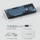 【Compact Layout & Four Indicators】The RK98 mechanical keyboard features 100 keys laid out in a 98% compact design with no gaps, resulting in a sleek and space-saving keyboard for gamers. Additionally, this gaming keyboard is equipped with four indicators to clearly display its status and remind you to charge 【Three Modes Connection & Versatile Interface】This wireless keyboard offers three connection modes: wired, Bluetooth, and 2.4GHz wireless, making it easy to switch between three different devices. RK98 wireless mechanical keyboard also features both USB and Type C interfaces, along with a Type C to USB data cable for convenient connectivity with various devices 【Hot Swappable Clicky Blue Switches】Designed for both white-collar workers and gaming enthusiasts, this hot swappable keyboard is built to deliver unrivaled sensitivity and reliability. With hot-swappable clicky blue switches, you can easily replace 3/5-pin switches without soldering, while enjoying the satisfying tactile feedback and clicky sound perfect for gaming and typing 【Ergonomic Design & Offset Arrow Keys】This pc gaming keyboards is designed to be both comfortable and efficient with anti-slip and two-stage adjustable tilt outriggers. The sunken design minimizes accidental touches and enhances typing efficiency, while the offset arrow keys provide seamless gameplay without affecting typing accuracy 【 Long Battery Life & Customizable RGB Lighting】Featuring a large-capacity 3750mAh battery, RK98 bluetooth keyboard offers up to 168 hours of battery life in its Bluetooth mode with lights turned off and 32 hours with the lights on. Moreover, the RGB lighting of this custom keyboard paired with the noise-cancelling cotton and bottom ensures that typing sounds are kept at a minimum to offer gamers and typists a pleasant experience