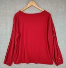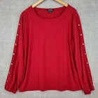 . ROZ & ALI Top Womens Petite Extra Large Red Split Sleeve Stretch Pullover 25" LENGTH: Measured from the top of the shoulder to the hem. 22" WIDTH: Underarm to underarm, measured flat from left to right. 17" SLEEVE LENGTH: Measured from the underarm to the hem. It is always best to compare the measurements above with a top that fits you comfortably. CONDITION - Excellent pre-owned condition. See the photo gallery to view this items measurements and condition. SHIPPED - USPS First Class Mail RETURNS accepted, must be returned within 30 days in original condition to receive a full refund. SHIPPING AND HANDLING We ship all packages within five business days Monday through Friday except Holidays. Consolidated shipping is available for multiple purchases. Thank you for helping our planet and buying previously owned and loved items. I am grateful for your business. Enjoy! Check out our eBay store and follow us. There are new listings daily. CUSTOM SKU: 31-2272 Disclaimer: While we make every effort to capture the most accurate depiction of every item when photographing, colors may vary from screen display to in person therefore we cannot guarantee "exact shade" on any item. Message us if you have questions.