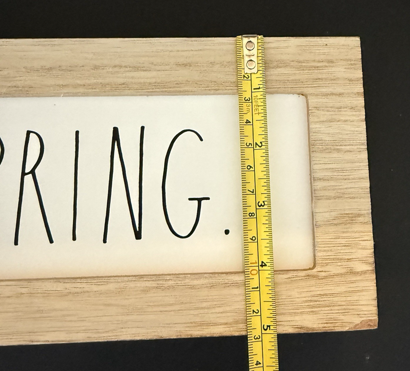The Rae Dunn "SPRING" White Washed Wood Sign is a stylish and farmhouse-themed addition to any room. Measuring 10 x 5 x 2 inches, this rectangular sign features a white color and is made of wood. It showcases a spring-themed design, making it a perfect decorative piece for your home or garden. With its minimalist and clean aesthetic, this sign is sure to add a touch of freshness and charm to your space.