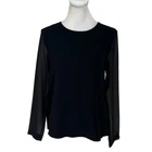 Rag & Bone Crepe Boxy Top Sheer Long Sleeves Black Blouse Womens Size S Boxy oversize style top by Rag & Bone. High scoop neckline. Long sheer sleeves. Loose silhouette. Approximate Measurements taken flat:pit to pit 17.5, length 23-26 Pre-owned; in excellent condition. No rips, stains or holes. Please see all photos for condition details.