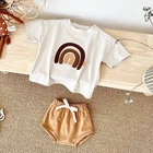 ⭐Department: Male infant/female infant ⭐Sleeve Length:Short Sleeve ⭐Material: Cotton blend ⭐ Closure type: Pullover ⭐ Thickness: Cool ⭐ Age Reference: 6-9 Months,9-12 Months,12-18Months,18-24Months,2-3 Years ⭐Colour: Apricot,Grey ⭐Season: Summer ⭐Occasion:Daily Life, Casual ⭐Accent: Rainbow Patchwork ⭐Type:Tracksuit Size Chart: ⭐Size 6-9M #, length 32cm; Sleeve length: 7CM;Chest circumference: 63cm;Pant length: 20CM; for 6-9 months. ⭐Size 9-12M #, length 34cm; Sleeve length: 7.5CM;Chest circumference: 65cm;Pant length: 21.5CM; for 9-12 months. ⭐Size 12-18M #, length 36cm;Sleeve length: 8CM;Chest circumference: 67cm;Pant length: 23CM; for 12-18 months. ⭐Size 18-24M #, length 38cm;Sleeve length: 8.5CM; Chest circumference: 69cm;Pant length: 24.5CM; for 18-24months. ⭐Size 2-3Y #, length 40cm; Sleeve length: 9CM;Chest circumference: 71cm;Pant length: 26CM; for 2-3years Please note that: 1. There is a difference of 0-3 centimeters in manual measurement. Before purchasing this product, please carefully check the measurement chart. 1 centimeter=0.39 inches 2. Please note that slight color differences due to lighting and screen are normal. If there are any quality issues with the product, please feel free to contact us and we will help you solve the problem as soon as possible. Package Content: 1 x Tops 1 x Pants Shipments & Payment: Your order will be handled within 1-2 business days after receiving your clear payment. Weekend excluded Tracking number will be provided for you ASAP. We accept PayPal.