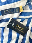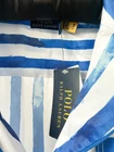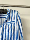 An artful rendition of the satin pajama shirt this Ralph Lauren is printed with a striped motif that models the look of painted watercolor strokes. Details: As seen on Drew Barrymore Blue and white striped Pyjama shirt that can be worn out Collared Long sleeve Button-up Satin fabric Sizing: States Small