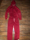 Elevate your style with this striking Ralph Lauren Denim hoodie in red. Crafted with high-quality fleece fabric, this hoodie is perfect for any occasion. It features a full-zip closure and is lined for added comfort. The hoodie is available in size L and comes with a matching pair of pants in size S.