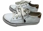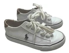 These Polo Ralph Lauren sneakers are a classic addition to any kid's shoe collection. With a round toe and lace-up closure, they provide both comfort and style for any occasion – whether it's active play or casual wear. The white fabric upper features the iconic embroidered pony for a touch of sophistication, while the rubber outsole ensures reliable traction. Perfect for walking and school activities, these unisex kids' shoes come in size 11 US/10.5 UK/27.5 EU and have a standard width. The low-top shoe shaft style and canvas lining and insole material make them suitable for all seasons – winter, summer, fall, and spring. Don't miss out on the chance to add these Polo Ralph Lauren shoes to your kid's wardrobe!
