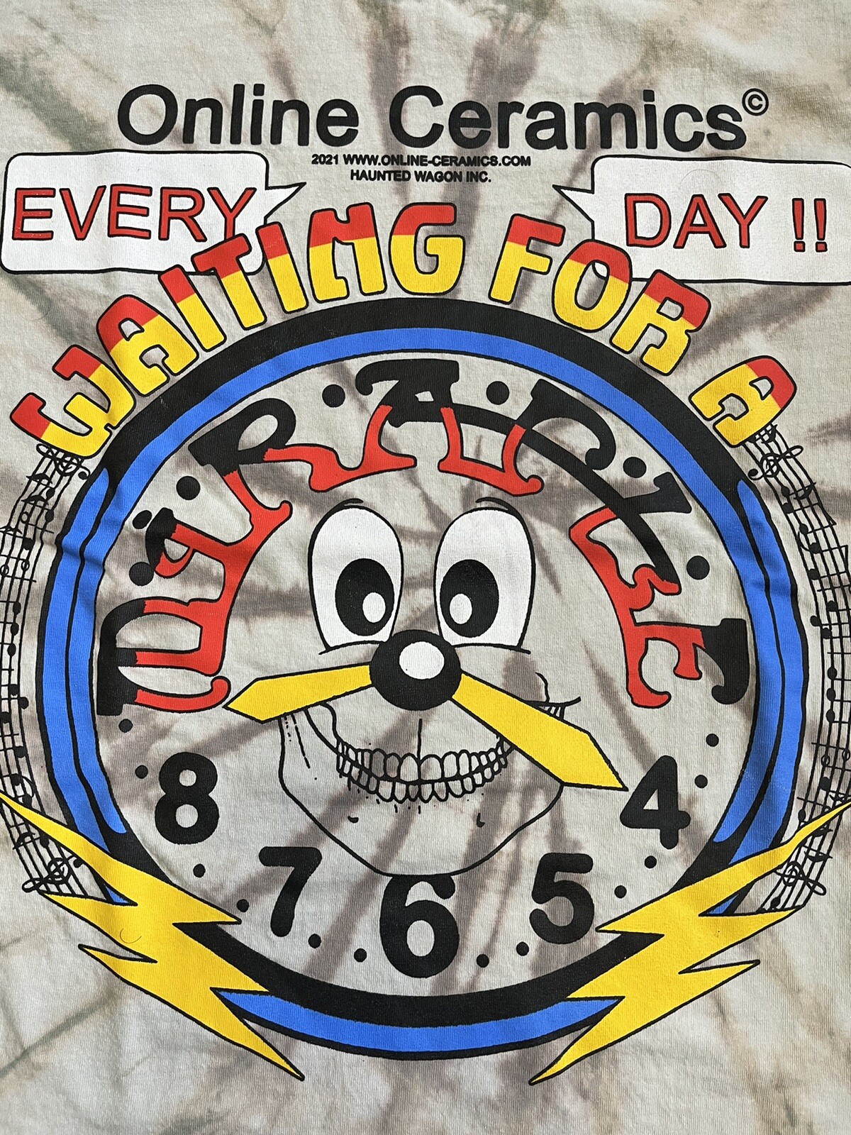 Completely sold out, this beautiful Online Ceramics shirt features lyrics from the Dead classic, “I Need A Miracle.” Worn very little, graphics are still bright. From pit to pit, it measures about 25 inches.