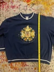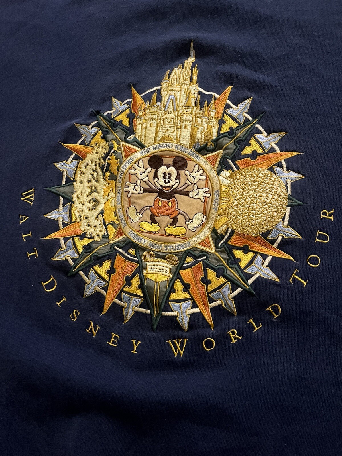 Embrace the nostalgia with this rare vintage 90s Walt Disney World Tour embroidered sweatshirt. Featuring iconic character Mickey Mouse, this blue pullover is a must-have for any Disney enthusiast. This size 2XL sweatshirt fits regular size types and is ideal for the winter, spring, and fall seasons. Its unique 90s theme and embroidered accents add a touch of retro charm to your wardrobe. Whether you're out on a casual day or just lounging at home, this vintage Disney sweatshirt is an excellent addition to your collection.