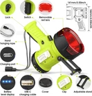 Rechargeable Spotlight Flashlight with 1000,000 High Lumen LED, Green Product Details Special Feature: Add red lens, Adjustable Stand, An output, Flood side light Color: Green Power Source: Battery Powered Light Source Type: LED Material: Abs Included Components: Charging Cable Product Dimensions: 3.6"D x 5.51"W x 6.65"H Light Path Distance: 550 Yards Battery Cell Composition: Lithium Number of Batteries: 1 Lithium Ion batteries required. (included) Water Resistance Level: Water Resistant Brand: WENFENG Runtime: 20 hours Style: Modern Recommended Uses For Product: Cycling, Reading, Emergency, Security, Camping, Hiking, Jogging Manufacturer: WENFENG Part Number: USZT-WL-GR-1 Item Weight: 1.08 pounds Item model number: MX-6009C Batteries: 1 Lithium Ion batteries required. (included) Item Package Quantity: 1 Special Features: Add red lens, Adjustable Stand, An output, Flood side light Batteries Included?: Yes Batteries Required?: Yes Color Temperature: 5000 Kelvin Product Dimensions : 3.6 x 5.51 x 6.65 inches; 1.08 Pounds Item model number : MX-6009C Batteries : 1 Lithium Ion batteries required. (included) Manufacturer : WENFENG Special Feature: Add red lens, Adjustable Stand, An output, Flood side light Color: Green Power Source: Battery Powered Light Source Type: LED Material: Abs Ultra-Bright LED Spotlight with Side Flood Light: Our rechargeable flashlights deliver a stunning 1,000,000-lumen beam, reaching up to 550 yards. Choose from four modes—High, Medium, Low, and Flash—for any scenario. The side floodlight offers wide-angle, shadow-free lighting perfect for reading, working, or illuminating large areas, making it a versatile tool for all your lighting needs. To prevent accidental touching of the power switch during work, there is a lock on the inside of the handle, when the lock is toggled down, it locks the power switch and cannot turn off the light, if you want to turn off the light, please toggle it up. Waterproof and Impact-Resistant: Built to withstand tough outdoor conditions, this spotlight is both waterproof and impact-resistant. The rugged ABS housing and silicone protective case ensure it can survive drops and bumps, providing reliable performance in any environment. Power Bank Functionality: This high lumen flashlight also doubles as a power bank, featuring an output port for charging devices in emergencies, keeping you connected even in remote areas. A handy battery indicator shows the remaining power, so you're always prepared. Long Battery Life with Fast 4.5-Hour USB-C Charging: Equipped with a powerful 10,000 mAh battery, this powerful flashlight offers up to 20 hours of light on low settings and 5 hours on high. Recharge swiftly with advanced USB-C technology, achieving a full charge in just 4.5 hours. Compatible with any USB charging port, this outdoor spotlight ensures you’re never left in the dark. Additional Features for Ultimate Versatility: This handheld spotlight offers an adjustable stand for hands-free use and a removable red filter for hunting, making it perfect for any adventure. A durable clip lets you attach it to your belt or pants for easy access, while the large, comfortable handle enhances usability for hunting, camping, boating, and emergencies.