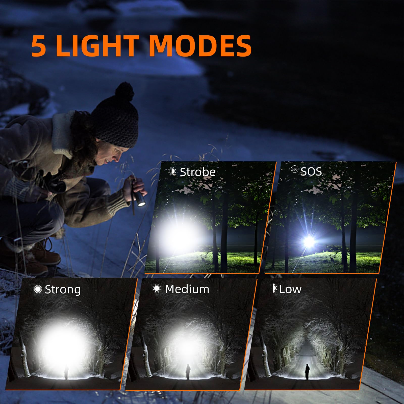 【Super Bright】T: 2000-lumen (max) X60-T rechargeable flashlights sweeps bright light over the length of about two football fields (600 ft / 380 m) Fully zoomable from wide to narrow beam 【Power Bank & Charging Indicator】: Led flashlight has built-in TYPE-C charging port (included). It features anti-reverse installation function protected circuit to ensure you have quality light and safety. It also indicates charging status. Full is blue, charging is red ,It can be used as power bank for smartphone or tablet in emergency. 【Sophisticated Design】This small flashlight is made of aviation-grade aluminum alloy, and the thick texture is reassuring. The diamond-shaped head structure can be used for emergency items such as window-breaking hammers; the core grid structure provides better heat dissipation; the grip grid design allows for deeper slip resistance. 【IPX4Water Resistant】 This flashlights for emergencies can be used in extreme weather such as rain, due to its excellent material and body design, Water Resistant non-slip, and impact resistant, suitable for outdoor use, such as camping, adventure, hiking, fishing, but please Do not immerse this mountaineering flashlight directly in water or discard the dust cover of the charging port, as these may directly damage the camping flashlight. 【Wide Applications】This compact flashlight is widely used in many circumstances. Perfect for working, reading, repairing, camping, emergency and outdoor sports, examples include hiking, running, jogging, biking.
