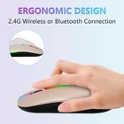 Wireless Bluetooth Mouse,LED Wireless Mouse,Rechargeable Mouse 2.4G USB Optical Wireless Mouse,Portable USB Optical 2.4G Wireless Bluetooth Two Mode Computer Mice for Laptop,PC, Mac OS, Windows ★ Led Wireless Mouse This wireless mouse Bluetooth with lights can give you more fun during office time. You can choose use the 2.4G wireless mouse when the mouse botton switch is on the 2.4G mode,or connect your laptop's Bluetooth to use the Bluetooth mouse, easy to switch,suitable for any occasion. ★ Slim&Comfortable Design Good surface coating technology gives you a skin-like touch. The ergonomic design provides 24 hours comfort for your work and study, and the portable and pocket size are perfect for you.Built-in battery,easy to charge by usb cable,no more need for extra AAA battery.It can be easily activated by clicking any buttons. ★ Wide Compatibility 2.4GHz mode is suitable for laptops, desktops or any device with USB port, just plug in the USB receiver and play directly. Bluetooth mode is suitable for Windows/Android/MAC OS system. Note: BT5.1 system requirements. Windows 8.0, Windows 10 or later; MacOSX 10.10 or later; iPad OS 13 or later / Android 5.0 or later. Please check or update the operating system before use. ★3 Adjustable DPI values ( 1600, 1200, 1000) resolution Optical tracking technology provides sensitivity and precise tracking on a wide range of surfaces. Meet your multiple needs, either for daily work or gaming. Packing List: 1 X Rechargeable Wireless Mouse 1 x USB Charging Cable 1 x USB Receiver (Placed on the bottom of the mouse) 1 x User Manual 1 x Warranty Card Dual Mode: The dual mode (BT5.2/3.0+2.4G) of this wireless mouse enables free switching between the two devices; When the wireless mouse Bluetooth button switch is in 2.4G mode, you can use the 2.4G wireless mouse, or connect your laptop's Bluetooth to use the Bluetooth mouse, Plug and Play; Note: You can't use Bluetooth mode and 2.4G mode at the same time Plug and Play: 2.4GHz mode is suitable for laptops, desktops or any devices with USB ports, just plug in the USB mouse receiver and use it directly. Wireless Mouse Bluetooth mode for Windows/Android/Mac, Chrome OS, Linux computer or tablets. Note: BT5.1 system requirements: Windows 8.0, Windows 10 or higher; MacOSX 10.10 or higher; iPad OS 13 or higher/Android 5.0 or higherUltra Slim Portable Mouse: About 4.4 x 2.2 x 0.79 inches, weighs 0.18 lbs, perfect for traveling, fits easily into laptop bag without weight and saves space Rechargeable Wireless Mouse: Built-in 500mAh rechargeable battery, no need change battery, charging time 2-3 hours, More than 7 days of working time and 30 days of standby time; Please charge the mouse for 2-3 hours before the first use. which makes it an ideal office/home/travel mouse Colorful Light: With 7 different colours that automatically breathe and switch, the unique cat's paw design of the LED wireless mouse for laptop provides soothing light and creates a pleasant atmosphere for work and play, note that the LED colours cannot be fixed 3 Adjustable DPI Values: 1600, 1200, 1000 resolution Optical tracking technology provides sensitivity and precise tracking on a wide range of surfaces; The wireless mouse Meet your multiple needs, either for daily work or gaming Package Content: 1 X Rechargeable Wireless Mouse, 1 x USB Charging Cable (No charger), 1 X USB Receiver (Placed on the bottom of the mouse), 1 x User Manual