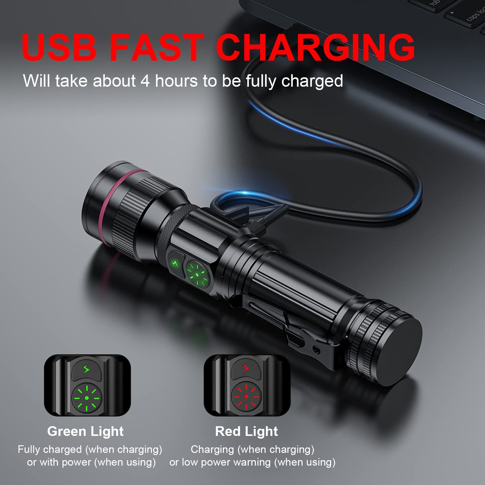 WdtPro Rechargeable Flashlight Dual Switch, 2000 Lumens Super Bright LED Flashlight, 5 Modes Zoomable, 12H Long-Lasting, IP65 Waterproof Tactical Flashlight with Clip for Home Emergency Camping Hiking Dual Switch Design & Power Indicator: These flashlights have 2 switches to control 5 light modes, much more convenient. One of the rechargeable flashlight switches is specially designed for emergencies.(Just one-click to strobe, keep you always safe in emergency.) This flashlight has an intelligent low battery warning function to remind you to charge it. When the power is less than 30%, the indicator will turn from green to red. Power indicator will also help you better master charging status Ultra Bright Rechargeable Flashlights: With the upgraded powerful LED chip, the high-lumen tactical flashlight delivers up to 2000 lumens(max). Its ultra-bright beam effortlessly illuminates an entire backyard. Easily zoomable from wide to narrow beam. Also with a pocket-clip for portable carry. It is small & compact enough to fit in your hands, pocket or backpack allowing for easy storage and quick access USB Rechargeable & Long-lasting: You don’t need to be busy replacing batteries constantly, very handy rechargeable flashlight and built-in 2000mAh Large-capacity rechargeable battery, the led flashlight only takes about 4 hours to fully recharge with overcharge protection. A single charge can provide up to 12 hours of continuous runtime in low mode and 3 hours in high mode Reliable & Waterproof: With a solid aluminum built and 3-layers of USB port waterproof protective cover design. Never worry about using the flash light in heavy rain, snow or other extreme weather. Perfect flashlight for use around the house, dog walking, or camping Great Value & 100% Satisfaction: A great gift idea for both men and women. Includes 2 x rechargeable flashlights, 2 x Rechargeable Battery, 2 x USB Cable,1 x User Manual. 90 days money back & 1 years replacement. Friendly customer service. Buy with confidence * Order Cancellation Policy ** You can return a product for up to 30 days from the date you purchased it. 1. The seller reserves the right to cancel the special case only due to eBay cancellation fee. 2. The decision of seller is the final. 3. The seller will respond to the cancellation request within 2 business days. Please wait for the result of cancellation. 4. In case the cancellation is not completed by some reasons, the buyer can follow the options below to get the refund. 4.1 The buyer can reject the item when it arrives. 4.2 The buyer can send the item back to the seller within 30 days If the buyer receives item (USA Shipment ONLY). The seller will provide the FREE return label to the buyer when the buyer opens " Return Item" case on eBay by using the reason as "Change my mind" ONLY. 5. When buyer has placed the order. The order will be processed and completed by automatic warehouse system within 5 minutes. In case that buyer sends the cancellation request after 5 minutes of placing the order, the request will be rejected. **Sending direct message to cancel the order is not allowed for every case.* Return Policy For the return case - If buyer would like to return the items for refund or replacement, please CONTACT SELLER to receive the free return label from seller. The refund or replacement will be processed with the tracking number of return label which is provided by seller only. The other ways of return which are not approved by seller will not be processed for the refund or replacement. SHIPPING Domestic Buyers - We ship within 3 business days of payment, usually sooner - We offer FREE shipping on all orders! - We only ship to the lower 48 states, no APO/FPO addresses or PO Boxes allowed - We have confidence in our products, but if you are not fully satisfied please contact us within 30 days of purchase and you will get full refund. International buyers – please note: Import duties, taxes, and charges aren't included in the item price or postage cost. These charges are the buyer's responsibility. - Please check with your country's customs office to determine what these additional costs will be prior to bidding or buying.