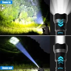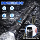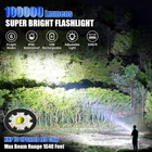 【100000 Brightest Flashlight】Rechargeable flashlights use a super light gathering XHP70 led wick, can generate up to 100000 lumens light output, maximum Irradiation distance is about 1640 feet. which is stable and super bright and provides incredibly powerful lighting. It is very suitable for camping, hiking or any outdoor activities and emergency power-off backup. 【5 Modes & Zoomable】Emergency flashlight has 5 lighting modes by high/medium/low/strobe/SOS. We can stretch the head of the bright flashlight to change the focal length and beam size, spotlight for long-range observation, and floodlight for large area illumination. Deep press 2-3 seconds under any mode to turn off without cycle through all modes. 【USB Charging & Reverse Charging】Tactical flashlight comes with USB charging cable that can be powered through a computer, car charger, adaptor, power bank. This powerful flashlights high lumens rechargeable has an output function, can be as an emergency power supply for mobile phones, or other devices for charging, bringing you more convenience for your outdoors. 【Durable Build】High powered flashlight built-in 1 AAA batteries high-capacity, our small flashlight provides hours of reliable illumination. The USB charging port has built-in reverse connection protection, overvoltage protection, and short circuit protection design, not only is it convenient for you to charge the flashlight, but it also increases the lifespan of the flashlight. 【Unique Design】This super bright led flashlight is made of high-quality aluminum alloy, which is thick and sturdy, protecting your heavy-duty flashlights from scratching, corrosion, rust, and break. The head allows for better light-gathering and the body grid design for deeper slip resistance. 【IPX6 Waterproof】IPX6 waterproof flashlight is made of high-quality materials and has a waterproof rubber ring, it is waterproof, anti-slip, and impact resistant. Note, please do not submerge this hiking flashlight directly into water or discard the dust cover of the charging port as these may directly damage the camping flashlight. It is very suitable for use in rain, snow, or bad weather outdoor activities situations. 【After-Sales Sevices】If you have any questions about the powerful flashlights, please be sure to tell us first, we have professional after-sales staff within 24 hours to provide you with absolutely satisfactory solutions. Don't get caught in the dark - order your 5 Modes & Zoomable Flashlight today! 【Best Gift】1 handheld flashlight,1 USB-C cable, 1AAA Battery Holder, 1 White Battery Tubes,1 lanyard, these flashlight rechargeable will be the best outdoor activity gift for father, mother, husband, son, boyfriend on Father's Day, Valentine's Day, Easter, Halloween, Thanksgiving and Christmas. Product Description 100000 LUMENS SUPER BRIGHT LED FLASHLIGHT The video showcases the product in use. The video guides you through product setup. The video compares multiple products. The video shows the product being unpacked. WHY CHOOSE OUR MULTI-FUNCTION RECHARGEABLE FLASHLIGHT Tactical flashlight 100000 Lumen brightest LED flashlight. Our powerful flash light can be zoomable, lighting you from different angles. IPX6 waterproof flashlight has 6 lighting modes:High, Medium, Low, Strobe/SOS. Waterproof and durable,it can be used in bad weather such as rain or snow. UPGRADED XHP70 LED Chip High powered flashlight with a maximum output of 100000 lumens, Irradiation distance up to 1640 ft. Can clearly illuminate over the whole yard. 10000mAh RECHARGEABLE BATTERY Flashlights high lumens built-in 10000mah rechargeable Βattery, use time up to 8-12 hours. Provide overcharge and overdischarge protection. POWER DISPLAY Handheld flashlight with 4 blue indicators lights:100% -75%-50%-25%. which shows how much power remaining, help you clearly know the battery usage. ATTACKABLE HEAD DESIGN The LED flashlight adopts a diamond-shaped structure and high-quality Aluminum alloy. In an emergency can break objects such as glass windows. WHAT YOU GET 2 x Powerful LED Flashlight, 2 x USB-C Cable, 2 x AAA Battery Holde, 2 x White Battery Tubes, 2 x Flashlight Lanyard, 2 x 10000 mAh Rechargeable Battery, 2 x Packaging Box STEPS TO INSTALL THE BATTERY Warm Tips: 1. Do not illuminate the eyes directly to avoid hurting your eyes. 2. Positive pole facing inward, negative pole facing outward 3. IPX6 level waterproof, but do not immerse it directly in water. 4. When not in use for a long time, please take out the battery to avoid leakage OUR SUPER BRIGHT ZOOMABLE FLASHLIGHT IS A GREAT PARTNER Powerful Handheld Flashlight Gifts for Men: Gift for dad, gift for men or women, gift for boyfriend, gift for husband, gift for him. Rechargeable LED Flashlights Widely Use: Reading, patrol, walking, climbing, hiking, fishing, outdoor camping, emergency repair