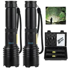 [Still worried about the flashlight isn't bright enough?]: Try our 2 pack 990000 lumens brightest Flashlight.This Rechargeable flashlights high Lumens powerful flash lights up to 30 times brighter than ordinary LED flashlight.The Super Bright Flashlights can clearly illuminate things within 3280 feet (1000m) on a dark night, easily lighting up an entire room or backyard. [Rechargeable flashlight]: Our flashlights are rechargeable with USB ports. It can be charged from power banks, outlets and laptops for easy indoor and outdoor charging. [Flashlights often run out of power quickly?]: Try our latest ultra strong flashlight, which only needs to be charged in 3-4 hours to provide a minimum efficiency of up to 12 hours. For camping, hiking, fishing, barbecuing, dog walking or any other outdoor activity you want [Meet various lighting needs-7Modes]: This strong handheld flashlight have 3 Main Light: high, medium, strobe, and 4 cob sidelight: High,medium,Red,Red Strobe.(Quickly press the on/off button twice to switch to the COB modes.) Powerful flashlight combined with cob light leaves your hands free to do other things at night. Whether you need to light up a vast expanse of space or just need a reliable source of light for your next camping trip, this flashlight has got you covered! [Waterproof & anti-slip Long-lasting]: The flashlight is IPX7 waterproof.can be used normally in any bad weather. such as rain or snow.it is made of Long-lasting aluminum alloy housing. wear-resistant. [Great Value Powerful Flashlights Kit]: What you will get:2pcs Led Flashlights.2pcs USB Charging Cable .1pc User Manual.You will be pleasantly surprised by the brightness, quality, longevity and performance of the led flashlights high lumens Rechargeable Flash light.