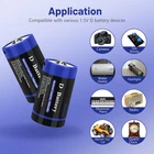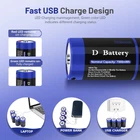 【USB Charge Design】No need charger and adapter,fast full charge in about 2 hours,easy to charge with usb cable, just simply plug into USB ports 【4 Pack Rechargeable D Batteries】Rechargeable usb D battery with 1000+ cycles , save your big money comparing with the single use batteries. 【LED INDICATORS MANAGEMENT】When charging, the LED will hold on red; when fully charged, the LED will remain green. 【Multi-Safe Protection】Built-in Integrated safety circuit protects Battery from over discharge/overcharge,when the battery is fully charged, it will automatically stop charging,passed the test of CE, ROSH, 2006/66/EC. 【Rechargeable Lithium D Battery】Mercury, cadmium and lead are not used in these lithium d rechargeable batteries, saving thousands of alkaline batteries and reducing a significant about of landfill waste.