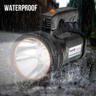 ADJUSTABLE BRIGHTNESS & LONG LIGHTING DISTANCE : The light source is CREE L2 LED ,which gives you 2 brightness levels to choose.Besides,Ultra-long illumination range up to 2600ft enables you to use it as a long distance tactical flashlight, a convenient outdoor rechargeable spotlight. LARGE CAPACITY BATTERY & EMERGENCY POWER BANK : Battery capacity up to 9000mAh can give you a 8-16H outdoor working time . Smart multiple protection (overcharge/ over discharge protection) can make it safe that you use it as a power bank for your mobile phone,camera, digital product in emergency. IPX4 WATERPROOF : The IPX4 WATERPROOF RANGE design can protect it from splashing water from all angles.It is suitable for outdoor environment, adverse weather conditions.Often used as home maintenance and outdoor activities,like camping,hiking, night fishing, sailing, caving and hunting etc. EASY TO HOLD AND HANDINESS DESIGN : Comfortable handle together with adjustable length shoulder strap, makes it pretty handy.The weight low to 0.95lb gives you a long handiness experience without tiredness.