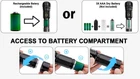 Powerful Illumination: Boasting an impressive real and tested upto 990000 lumens, this tactical flashlight delivers an exceptionally bright beam for optimal visibility. Multi-Mode Operation: With 5 adjustable modes, you can customize the light output to suit your needs, from a focused spotlight to a wide floodlight. Rechargeable Convenience: This flashlight features a rechargeable battery, eliminating the need for frequent battery replacements. with rechareable battery included in the item package. Durable and Waterproof: Constructed with high-quality materials, this flashlight is waterproof and built to withstand harsh conditions. Versatile Applications: Ideal for emergencies, camping, hiking, and various outdoor activities, this handheld flashlight ensures reliable illumination when you need it most. USB/USB-C cable for charging the flashlight to charge the rechareable battery and AAA Battery holder to use AAA battery if needed.