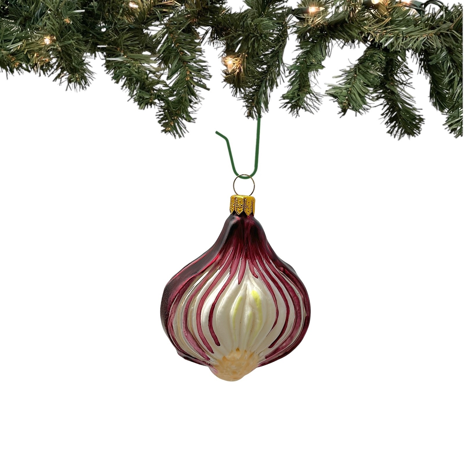 Red Onion Vegetable Polish Blown Glass Christmas Ornament Set of 2 Decorations PRODUCT DESCRIPTION Red Onion Ornaments. Set of 2. Handcrafted in Poland. Hand-painted by Polish artisans. Made from mouth blown glass. Approximately 2.25 x 1.75 x 3 inches (LxWxH). Includes original Pinnacle Peak Trading box and packaging. Imported by Pinnacle Peak Trading Company. © Copyright . All rights reserved.