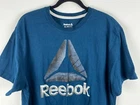 This Reebok T-Shirt is a must-have for any fashion-conscious man. The blue graphic print on the shirt adds a touch of sophistication to the design. The shirt is made from a blend of polyester and cotton, making it lightweight, breathable, and easy to care for. It has short sleeves, a crew neckline, and a regular fit, making it perfect for summer, spring, or fall. The shirt features the Reebok logo as an accent, adding a touch of sportiness to the design. It is a size XL and is suitable for machine wash. The shirt is not only stylish but also practical. Dimensions Shoulder to shoulder 19in Pit to pit 22in Shoulder to bottom 27in