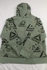 The Reebok Unwind Hoodie is a men's pullover hoodie in size 2XL, featuring a green all-over print design. It includes a kangaroo pocket on the front for added convenience. This hoodie is part of Reebok's activewear collection and is designed for regular fit. Perfect for casual wear or workouts, this hoodie combines style with functionality, making it a versatile addition to any wardrobe.