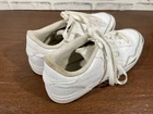 Crafted for the tennis enthusiast, the Reebok Club MEMT sneaker merges classic style with athletic performance. In a crisp white color, this size 8.5 shoe features a durable leather upper and a low-top design for a comfortable fit that's perfect for any casual or activewear occasion. The fabric lining and foam insole ensure your feet stay comfortable, while the rubber outsole offers reliable traction on the court or the pavement. The Reebok Club MEMT sneaker, style code H00680, boasts a sleek, solid pattern with the iconic Reebok logo accenting the lace-up closure. Designed with versatility in mind, this shoe is suitable for all seasons and includes an adjustable feature for an individualized fit. Whether you're serving, volleying, or just enjoying a day out, these sneakers are a classic addition to your footwear collection. Good preowned condition. The insoles and collars are stained and dirty with lint & possibly hair as pictured. The outer soles have a bit of separation from the uppers as pictured. Please see all photos. For clothing specifically, see photos for all measurements and/or any issues if applicable. Pay close attention to the measurements as the size of the garment may quite possibly be different than the actual measurement(s) due to washing, shrinkage, or stretching as these are used clothes. The size in the title is the size on the tag of the garment. See photos for measurements of actual measurements as they may differ. ALWAYS CHECK THE MEASUREMENTS IN THE PHOTOS. This will remove any questions on measurements as well as always cover the possibility of human error in the listing(s) in the case of a typo or oversight. All clothing and shoes have been washed/cleaned, and comes from a smoke free environment. If shoe trees appear in the photos, they are for photography purposes only to illustrate how the shoes look filled out, and are not included. I am available for questions. I accept or negotiate reasonable offers. Have an amazing day. Thank you.