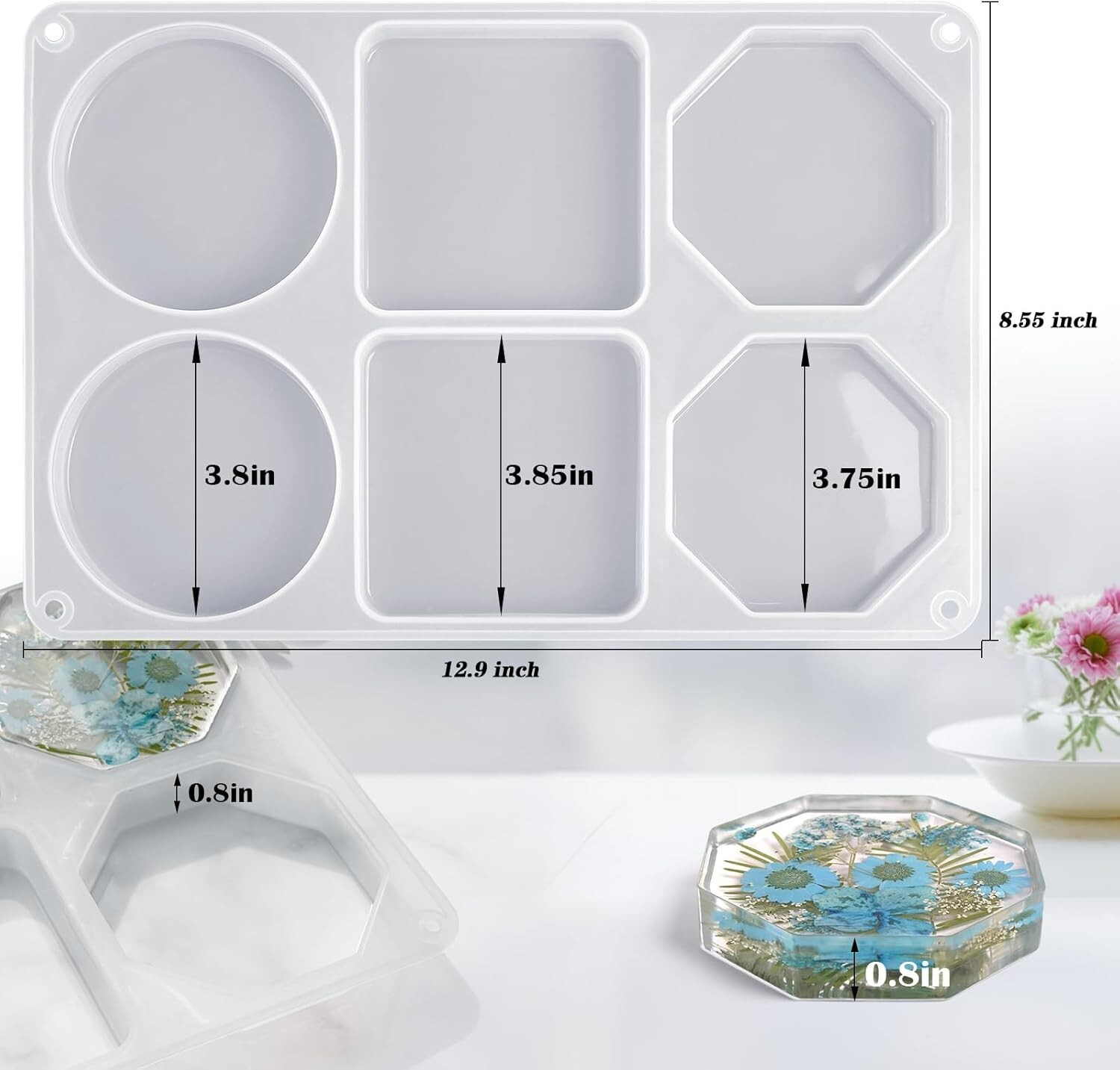 Resin Large Coaster Molds 6-Cavity Deep Round Silicone Molds for Resin... About this item: Large Coaster Resin Mold: 6 cavity round coaster molds height: 0.8 inch, filling a coaster requires 5.5oz epoxy resin. Silicone mold easy to demold and durable. The interior of the mold is smooth and glossy, ensuring a smooth surface of the finished product without the need for polishing. Silicone Mold for Resin Casting: Deep round coaster resin molds Ideal for making coasters, paperweights, wall decor, bowl mats, specimens, home decor, and more. You also can add dry flower, pearl pigment, mica powder, glitter and sequins into the resin molds to get a unique molds. Premium Quality Silicone Mold: Resin coaster molds are made of durable silicone by advanced techniques, with the flexible, smooth and reusable and high transparency, easy to use and clean. DIY Epoxy Molds: You can also share more time with your family and create unique dried flower, leaf, and insect specimens and other resin jewelry projects. It's a ideal gift choice to send to your friends family as Mothers' Day, Fathers' Day, Thanksgiving, Graduation seasons, Valentine’s day, Halloween or Birthday gifts. Suitable for Many Casting Materials: Silicone coaster mold for resin compatible with many casting materials, especially good for epoxy resin, casting resin, uv resin,and with the following casting materials such as gypsum, wax, soap, polymer clay, gypsum, etc.