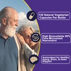 Effects: Brain & Nervous System Health,Heart Health,Mental Focus Ingredients: Trans-Resveratrol Directions: Take 2 capsules once daily after a meal. Shipping: Ships within 48 hours on working days. Shelf life: 2 years Description: Powerful Trans-Resveratrol, 99% pure resveratrol in easily absorbed trans form per serving. Powerful antioxidant protection that promotes healthy aging, brain function, focus, memory, heart and immune health in men and women. The trans form of resveratrol has a more stable structure, resulting in increased bioavailability, allowing the body to absorb and use it more efficiently. Authentic Non-GMO Resveratrol supplement. Pure ingredients free of soy, dairy, gluten, preservatives, wheat, fish and tree nuts. Document