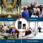 Shipping Service:Priority DHL Express Service when items ship from China.(2-7 business days) Retekess T131S Wireless Tour Guide Audio System Receiver for T130S Meeting Tour NOTE: This is wireless receiver only, it has to match our transmitter (T130S 195-216MHz,not be included in package) to build a wireless tour guide system, please feel free to contact us. Receiver Features: Portable design, the smallest and lightest PLL synthesized design, with high frequency stability 49 channel: allows 49 groups to operate simultaneously at the same place Built-in rechargeable lithium battery, make sure can use all day long LCD display, volume adjustable, battery consumption display, easy to operate Applications: Tour guide, Wireless meeting, Wireless teaching, Simultaneous interpreting, Corporate hospitality, Factory tour, Church sermon, etc.. Receiver Specification: Frequency range 195-216MHz Channel 49 channels Operating voltage DC 3.7V Audio frequency input 3.5mm line Frequency response range 50-18000Hz SNR 80dB(Typical) Image rejection ratio ≥90dB Degree of distortion <0.3% Effective working area 100m (empty) Capacity of battery 900mAh Working hours About 20 hours Size 73x 42 x 12mm / 2.8 x 1.6 x 0.5 in Weight 45g / 0.1lb Package Includes: 6 x Wireless receiver 6 x Single earphone 7 x Lanyard 1 x English manual Long working distance Signal transmission distance up to 100m/328ft, is ideal for keeping social distancing, such as tour guides, translators; factory visits; training meetings and other scenarios. The frequency range is 195-216MHz, helping tour groups overcome background noise and distance from the guide. One key to mute When the tour guide has to answer the phone during the explanation, he can turn on the mute function with one button on the transmitter instead of turning off the transmitter. PLL technology for signal stabilization PLL digital locking frequency synthesis design, more stable frequency, data mute locking technology, no interference noise. Ensures the clear and smooth audio transmission in a tour trip or in a conference. Ultra-long standby rechargeable battery Built-in 4200mAh lithium rechargeable battery in the transmitter can be used for 20 hours. Built-in 900mAh lithium battery in the receiver can be used for 20 hours. Long working time ensures your guests won’t miss any of your message,readily for a whole-day conference or journey. Wireless ID Setting Manual ID Setting We have 2 ways to set ID: Wireless ID setting and manual ID setting. Wireless ID setting works better for the occasion that if have to set the ID for many receivers, like a big conference; Manual ID setting works better for the occasion that if have to set the ID for few receivers, like a small class, a small group of tourists; Support 49 channels In the same tourist attraction, there will be multiple sets of equipment for explanations at the same time, and 49 optional channels will keep your team free from interference from other equipment. AUX and MIC dual-channel audio input The tour guide can play background music through the AUX function when explaining. Allow visitors to immerse themselves in the attractions. The clear and high-quality sound offers enjoyable listening experiences.. D-shaped earphones Compatible with left and right ears, it can reduce the burden on listeners who wear headphones for a long time compared to wearing headphones on one side. It is convenient to wear and solves the difficulty of using some hearing-impaired people, increasing the wearing options of users. Intuitive user interface LCD display for battery power, channel, volume, it is very easy to operate. The lit display design allows users to see information intuitively even in dark environments. Mini-sized The transmitter and receivers are mini-sized and light. Easily hang on your neck and it doesn’t cause neck pain even for a long-time wearing. Wireless tour guide system for a factory tour. Presenters don’t have to shout to compete with ambient noise. Tour group can adjust their own volume to a comfortable level. Make sure every visitor hear the introduction when the machines are working. About Us