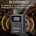 无标题文档 Shipping Service:Priority DHL Express Service when items ship from China.(2-7 business days) TT105 2.4GHz Professional Wireless Tour Guide System for Traveling Museum Visit Conference Features: 2.4GHz signal transmission with stable audio quality Two-Way communication: allowing two speaker speaking at the same time One-key Receivers channel synchronization function saves much time 150 meters communication distance in the open air 50 channels to choose, up to 50 groups tour at the same location Built-in rechargeable lithium battery, long battery life Pocket size and light weight, easy to use Description: Dual speakers TT105 tour guide 2 way receiver system supports two transmitters in a group talking to each other, at the same time, all receivers can clearly hear what the two transmitters are saying, suitable for two tour guides' trips, double-hosted meetings, or factory tours. (Note: the secondary transmitter cannot be used alone) Long-range two-to-many mode The communication distance between the two-way transmitters is 328ft/100m and between the transmitter and receiver is 492ft/150m. Two presenters can communicate in both directions 100m apart and their listeners can listen to the message clearly at a range of 150m from them. MIC input and AUX input Microphone port can be used as an AUX port, you can use a 3.5mm AUX cable to connect the transmitter and audio device for audio transmission, so your visitor or listener can hear music or other voice files from an external audio device. Long standby time TT105 dual-speaker wireless tour guide system has a built-in rechargeable lithium battery with long battery life. When fully charged, the transmitter can be used continuously for 10 hours and the receiver can be used continuously for 12 hours. You don't need to charge it frequently, and you don't have to worry about the device running out of power and affecting the tour activities. 2.4G universal frequency Tour guide 2 way receiver system uses 2.4G universal frequency, you can use it all over the world. And the 2.4G transmission signal is more stable, private, and noiseless, with crystal clear sound, so your visitors can enjoy a comfortable narration process. Volume adjustment The two transmitters have a volume level of 0-4, and the receiver has a volume level of 0-9. The listener can freely adjust the desired volume with the volume adjustment buttons. If you use it for noisy outdoor tours, or factory visits, or if you have hearing-impaired listeners, the wide range of adjustable volumes will definitely help you. Automatic channel synchronization Just one step to set all transmitters and receivers on the same channel. Easy to operate, it only takes ten seconds to complete the pairing. Save time, you don't have to adjust the receiver's channels to the same one by one. Portable dual-speaker tour guide system The main transmitter and vice transmitter weigh 60g and the wireless receiver weighs only 51g, lightweight and small size, users won't feel discomfort when wearing them because of the heavy equipment. This also makes it easy for you to carry a tour guide system anywhere you go. Add receivers As your team expands, you can add as many receivers as you need. The newly added TT105 receiver can be paired with the TT105 transmitter and work together. That means you can purchase as many transmitters and receivers as you like, and we have a variety of combinations to meet the needs of different teams, as well as 32-port and 40-port charging cases for you to choose from. If you have other quantity combination needs, contact us to get them. Comfortable accessories Main transmitter and vice transmitter with headset microphone, the host can hang it on the ear, and the microphone position from the mouth can be adjusted at will to achieve better noise reduction and clarity. Receiver with ear-mounted single-sided headphones, comfortable to wear and not easy to fall off, even if the team is on the march, the microphone and headphones will not fall off. Specification: T ransmitter Frequency range 2400-2480MHz Channel 50 channels Output power 10mW Power supply Built-in 1500mAh lithium battery Working time About 10 hours Working distance 150 meters (open air) Size 84 x 49 x 19mm Weight 60g Receiver Frequency range 2400-2480MHz Channel 50 channels Power supply Built-in 1000mAh lithium battery Working time About 12 hours Size 84 x 49 x 19mm Weight 52g Package Includes: 1 x Main transmitter 1 x Vice transmitter 20 x Receiver 2 x Microphone 20 x Single earphone 22 x Charging cable 22 x Lanyard 1 x English manua About Us