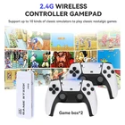 Product Description: Featu res: - Orig inal 3K rocker,special game rocker for arcade, high sensitivity andantiskid design. - 2.4G wireless controller gamepad .Support up to 10 kinds of classic simulators to play classic nostalgic games. - The upgraded version of H D is more smooth and ready to play. - Support wireless handle and wired handle, a drag two handle,support four people online to play. Specifications: Product parameters: Product Category: Gaming Dongle Main control frequency: Duad-core Cortex-A7 up to 1.0GHz Memory performance: DDRIII 256M Support external TF: expandable to 128G Game content: 64G(40000+ Games ) Support games arcade, mame, atari2600, atari5200, atari7800, atarilynx, cps1, cps2, cps3, fbneo, gamegear, gb, gba, gbc, genesis, megadrive, nes, nesh, ngpc. pcengine, psx, sfc, snes 23 kinds of emulators Use interface: HDMI-compatible output, 1080P, 720P Voltage input: 5V/1A/2A Item Incl uded: 1 x Game stick 1 x HDMI-compatible cable 1 x USB charging cable 2 x Wireless gamepad 1 x Receiver 1 x 64G TF card 1 x Manual