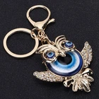 Rhinestone Keychain with Blue Turkish Evil Eye Charm for Bags and Purses