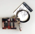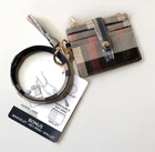 This is a Gangnam Print Ring Loop Cardholder Wristlet made of Faux Leather in Multicolor. It features a Vegan Leather fabric, a Key Ring, Coin Accent, and Tasseled design. The item is a small size (S) and has a Lanyard Style Bracelet with a length of 4.5 inches and width of 3.5 inches. It is designed for women, with a focus on functionality as a Card Wallet.
