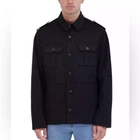 Robert Graham Men's Faux Suede Utility Overshirt Jacket in Black New With Tags Size Medium A versatile overshirt in faux suede, lined with Robert Graham Signature print. A relaxed fit yields effortless comfort in this shirt-jacket finished with twin chest pockets and epaulet detail. Robert Graham print under the cuff, a signature Robert Graham detail. Perfect for everyday comfort. Relaxed fit Spread collar; button and zipper closure Long sleeves with button cuffs Two chest flap button pockets; two interior pockets Epaulets on shoulders Body: 100% polyurethane faux suede; lining: 100% polyester Dry clean Imported
