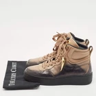 Our eBay Store About Us Contact Us Add to Favorite Sellers Roberto Cavalli BlackBeige Leather High Top Sneakers Size 38 Complete your smart, casual look by wearing these trendy sneakers, crafted from leather. They are designed in a high-top silhouette with rubber soles and lace-ups. These sneakers from the house of Roberto Cavalli are accented with the gold-tone accents This pair of black sneakers will go well with all your favorite outfits. Product Details Brand Roberto Cavalli Color Black Includes The Luxury Closet Packaging Outsole Length 25 cm Outsole Width 9 cm Size 38 Certified by The Luxury Closet This item has gone through a detailed authentication process overseen by our experts. We offer a lifetime guarantee of authenticity on all our items. How We Check The in-house team of experts at The Luxury Closet is highly trained to verify the authenticity and the condition of the luxury products. They ensure that only 100% authentic items are put on sale.The evaluation process is unique with its own mix of assessment criteria and differs according to the category. Each item is evaluated based on the following combination of hallmarks, hardware, stitching, symmetry, material, craftsmanship, stamping, codes, hologram stickers, and packaging. Our authenticators also check if the items have been modified or amended (e.g., aftermarket diamonds, replaced batteries, repaired bags, etc.) International Buyers Import duties, taxes and charges are not included in the item price. These charges are the buyers responsibility. Please check with your country’s customs office to determine what these additional cost will be prior to buying.