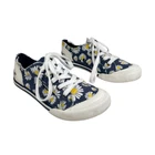 Rocket Dog Jazzin Navy Daisy Plush Foam Sneakers Shoes. Size 9. In gently preowned condition with some scuffing to the sides, wear to the soles and faint color transfer on the laces. Colorful daisy print with a navy blue background. Low top, lace up, cotton upper, rubber toe cap, Rocket Dog logo heel cap and plush foam comfort insole.