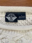 Nice vintage sweater. Please see photos for actual measurements. Sleeves are shorter than the usual long sleeves. Probably stretchable. There is an area at the top that could use a reinforcement stitch.
