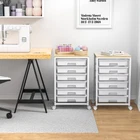 6 DRAWERS FOR LARGE STORAGE CAPACITY: Rolling cart with drawers includes 6 drawers which provide ample space for you to stuff by different categories. Moreover, you can organize these items by color, stereotype, and size to keep them tidy and clean. Slide-out drawer design, with smooth slide track and ergonomic handles, easy to open or close. WOODEN TABLETOP & THICK DRAWERS & METAL FRAME: The utility cart with drawers boasts a sturdy and durable -coated steel frame with water and rust resistance ensures a sturdy construction and built to last. Additionally, the slide-out drawers are made of durable PP material, which also boasts great durability. Holds 33 pounds on tits op plate and 11 pounds per drawer. This 6 drawers rolling storage cart will serve you for a long time. AMPLE SPACE FOR STORAGE & CLASSIFICATION: The overall size of this rolling storage cart with drawers is 15.55"D x 12.60"W x 24.49"H. Wooden tabletable top allows you to put plants, DIY cutting machine,printer and other decorations. By expanding the storage space vertically, smart solution of making full use of limited space. There are different color drawers for to and classifying your stuff. FLEXIBILITY MOBILITY & LOCKABLE WHEELS: Storage cart with drawers with four universal wheels can swivel 360 degree and help you move it easily. Locking wheels provide maneuverability and stability when needed. Smooth wheels, scratches and noise during movement can be effectively avoided. FIT YOUR DIFFERENT STORAGE NEEDS & EASILY ASSEMBLED: Whether you are a housewife,an office worker,a student or a craftsman,this practical versatile cart will be very helpful to you. Perfect for living room,bedroom, office,sewing room,craft room,classrooms,dorm,art studio or homework station. More drawers and colors great to storage tools,sewing supplies,embellishments,punches,stamps,paper,scrapbooking,school supplies,toys,stationery,office supplies,art and craft materials and beauty products.