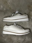 Elevate your sneaker game with these stunning Ron White Nova Ice Platino Leather Sneakers. Designed for women, these lace-up sneakers feature a solid pattern with glitter accents and a low-top shoe shaft style. Perfect for activewear, casual outings, or workwear, these sneakers come in a white color and are made of high-quality leather from Italy. These Nova Sneakers provide arch support and are available in EU Shoe Size 39.5 and US Shoe Size 8.5. The insole is also made of leather, ensuring maximum comfort for all-day wear. With a retail price of $395, these designer sneakers are a steal. Don't miss out on the chance to add these stylish sneakers to your collection.