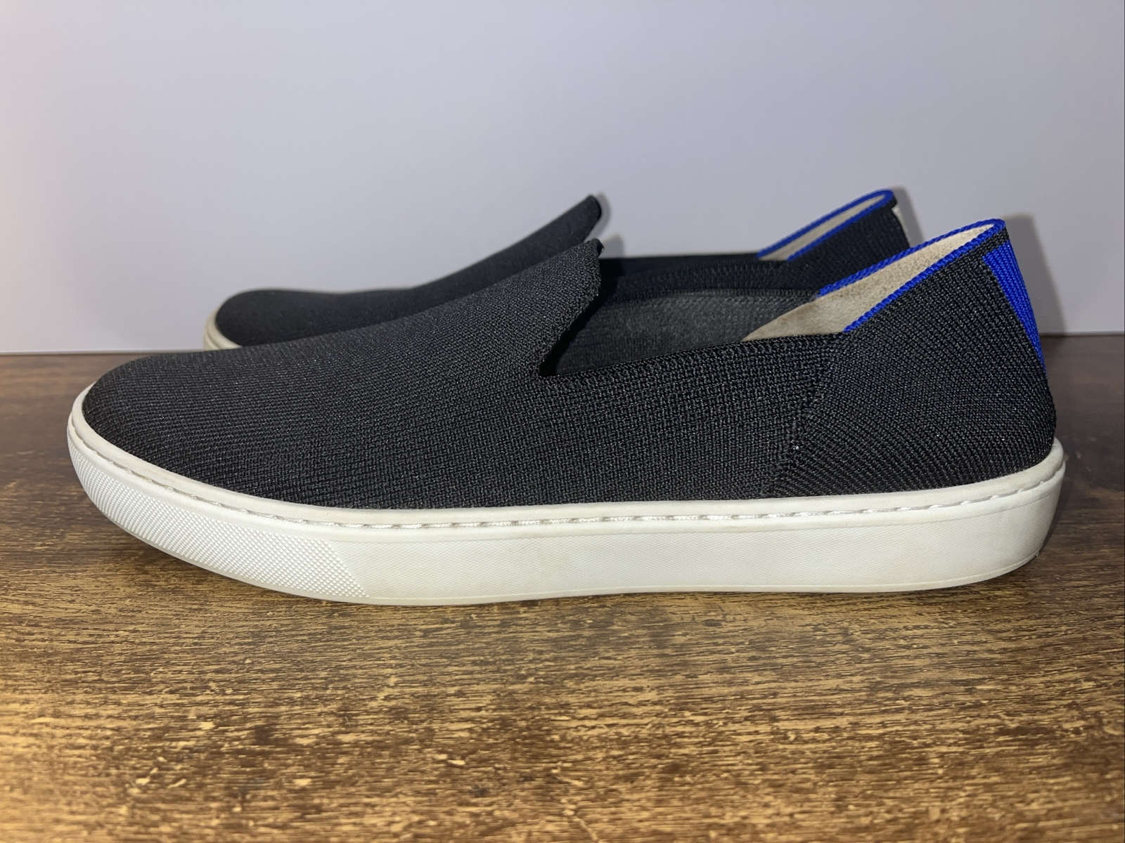 Experience the ultimate in comfort and style with Rothy's The Sneaker, a sleek black slip-on shoe designed for women who value both fashion and function. The size 9.5 sneakers are perfect for walking, thanks to their breathable textile upper and standard shoe width that accommodates a range of foot shapes. These low-top athletic shoes are a versatile addition to any wardrobe, effortlessly blending with a variety of outfits. The easy slip-on closure ensures convenience for those on-the-go moments, while the sneaker's durable construction and timeless design make it a staple for everyday wear.