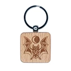 Runic Tribal Vampire Bat with Moon Engraved Wood Square Keychain Tag Charm