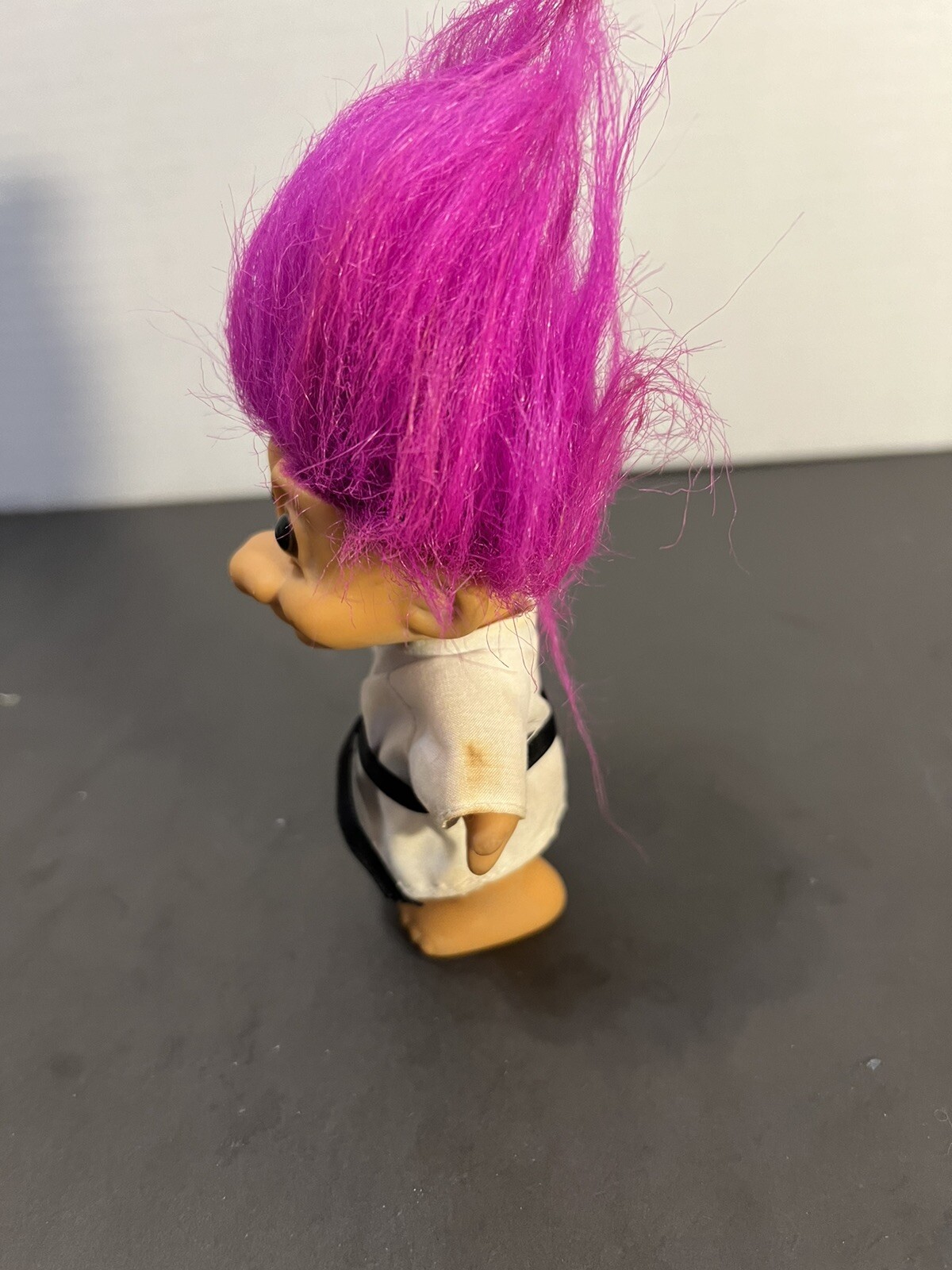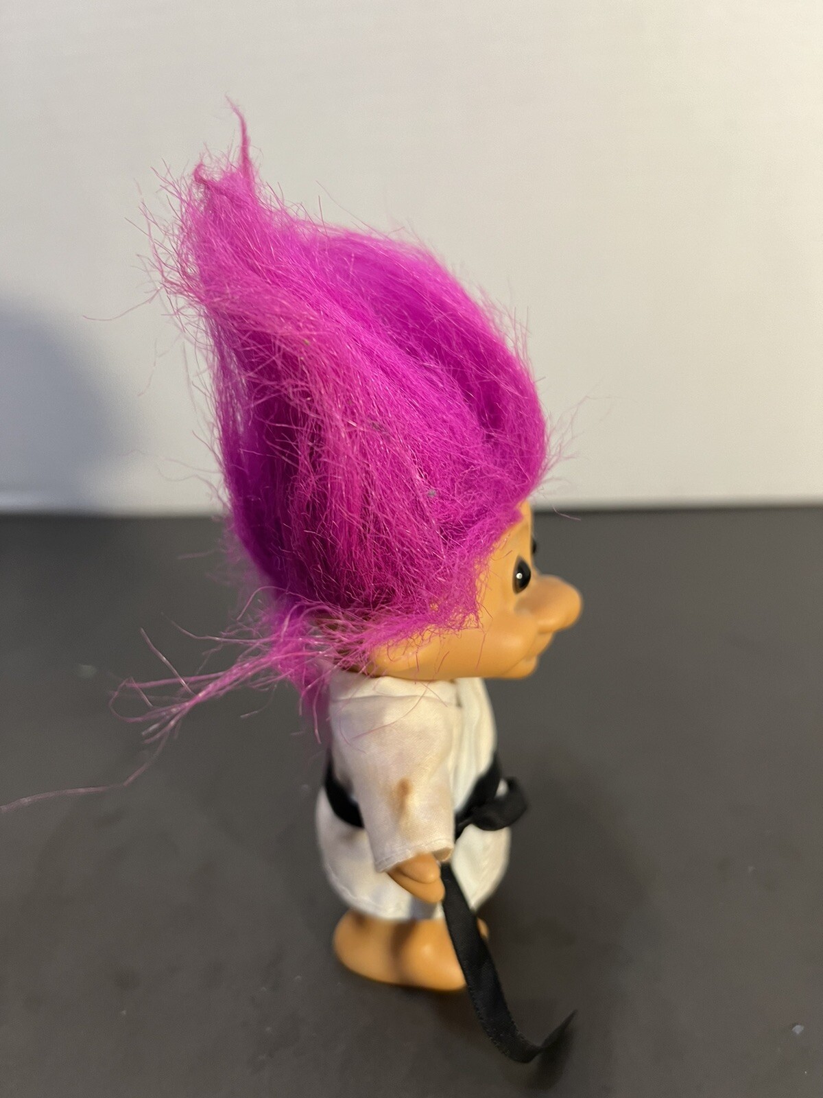 Russ Troll Purple Hair Karate Black Belt Vintage 4" Good condition but the sleeves need cleaning. Please see photos for details. B10-1
