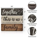 Rustic Home Decor 3 Pieces Together This Is Us Family Home Wall Decor Wooden Signs For Bedroom Living Room Kitchen Decor Product Details Product Dimensions: 16 x 5 x 0.7 inches Item Weight: 10.6 ounces Manufacturer: TIANCENTRAL H DIFFERENT SAYINGS ON 3 SIGNS : The living room wall decor signs are printed on the different sayings - [together is my favorite place to be]; [this is us, our life, our story, our home] and [family, where life begins and love never ends]; the warm sayings will create a good atmosphere to your living environment. LONG-LASTING TO USE : The farmhouse home decor signs are made of quality solid wood and printed with high precision UV ink which is not easy to fade or break. You can use them to decor your home for a long time. EXTENSIVE USAGE : The rustic home decor wooden sign is an ideal decoration which is suitable for many places, such as living room, bedroom, kitchen, classroom, entryway, office, farmhouse and more to create a family atmosphere, bring you a warm feeling. EASY TO HANG : These family wall decor signs come ready to hang with a keyhole on the back. You can mount it on wall easily which is very convenient and saves your time. IDEAL GIFT : Farmhouse living room decor signs are an ideal gift that you can give it to your friends, classmates, family, colleagues and more, and it also can be a nice gift for anniversaries, weddings, Christmas party and New Year party.