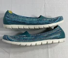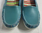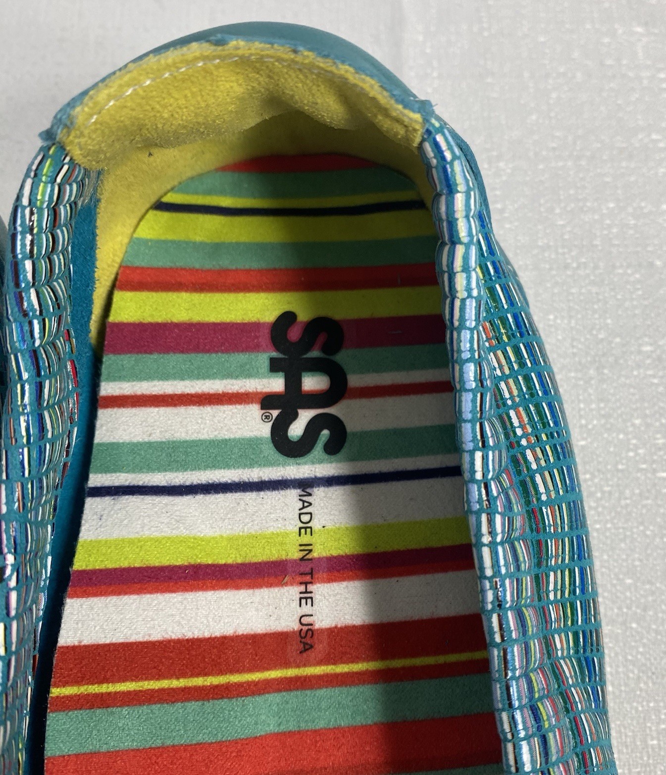 The SAS Shoes Women's 11 Sunny Slip-On Loafers in Turquoise offer a casual and comfortable low top style perfect for everyday wear. With a round toe shape, slip-on closure, and low heel height, these loafers are easy to put on and take off. The synthetic outsole and breathable features make them ideal for all seasons, while the leather upper material and fabric lining ensure durability and comfort. The classic yet modern design, along with the SAS Tripad product line, guarantees a reliable and stylish shoe for women who value both comfort and style in their footwear choices.